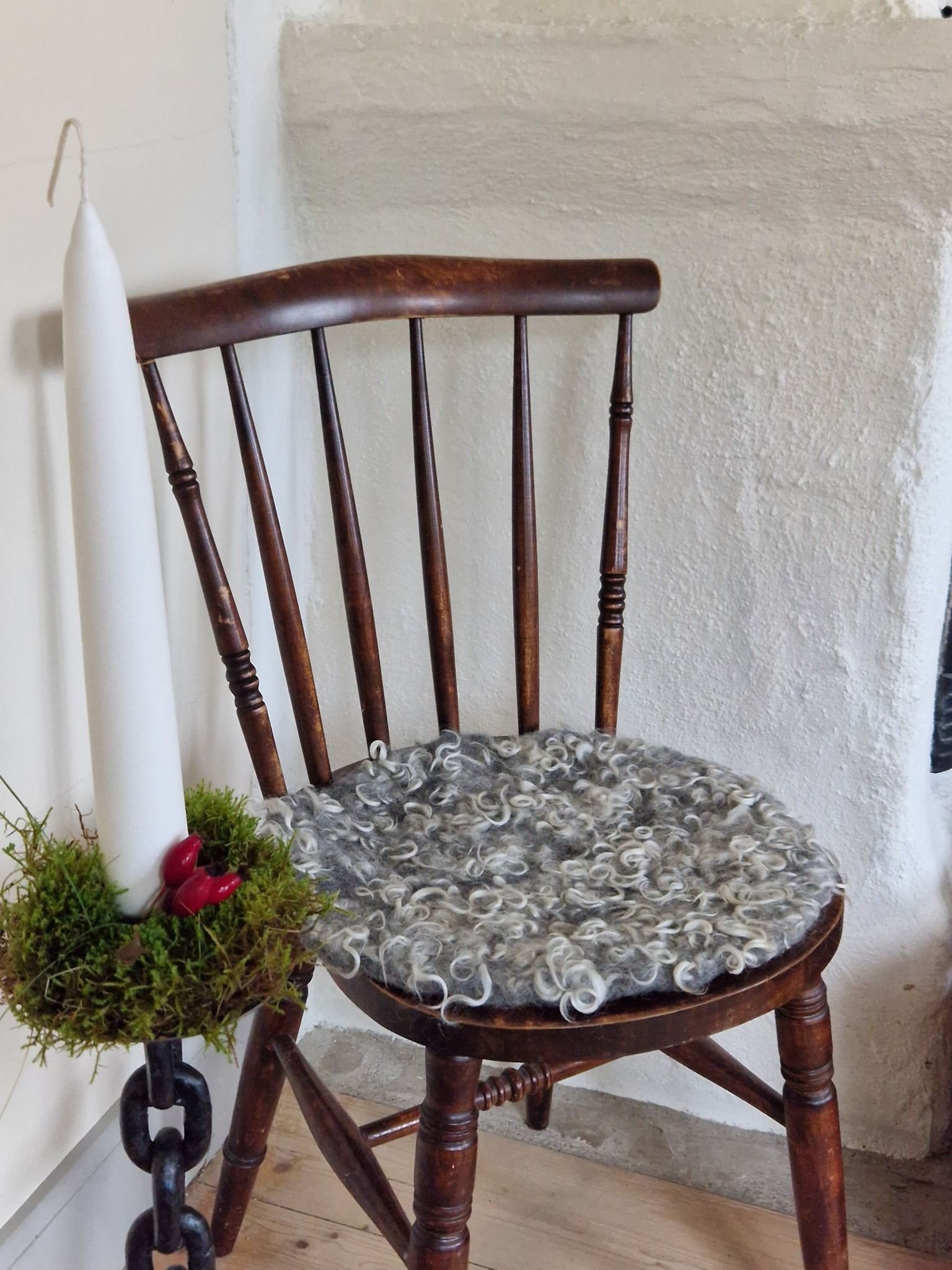 Tovad sittdyna av ull, inlockad rund