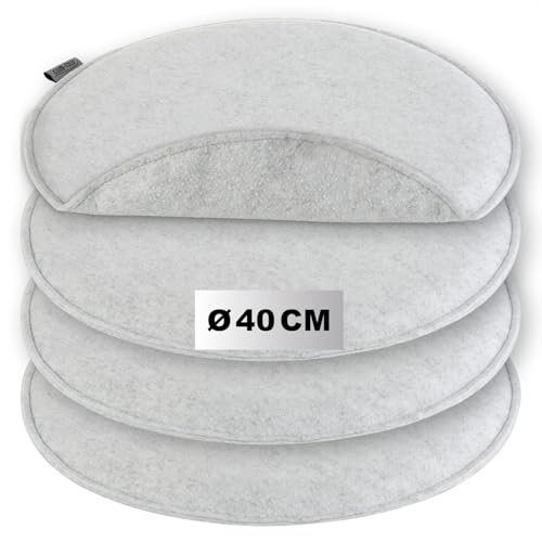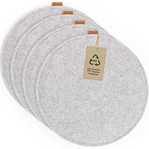 Miqio Design sittdyna rund av filt med halkfria spännen | hållbar från återvunna PET-flaskor | ø35 cm | set om 4 | tvättbara stolkuddar halkfria | sittdyna för bänkar och stolar | ljusgrå