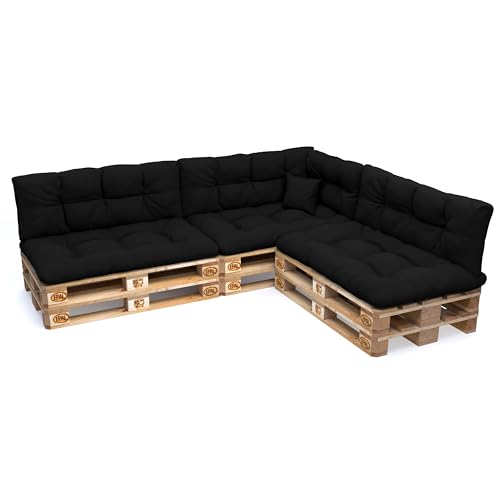 chilly pilley® pallkudde quiltad med skumflakefyllning - sittdyna och ryggstöd - inomhus & utomhus, många färger - svart