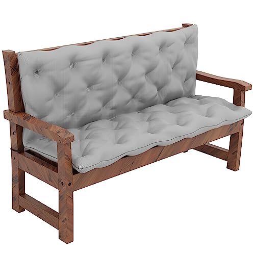 MOLTICO Bänkkudde med fäste för trädgårdsbänk – sittdyna och ryggstöd 150 x 50 x 10 cm – vattentät – utomhus och inomhus – grå