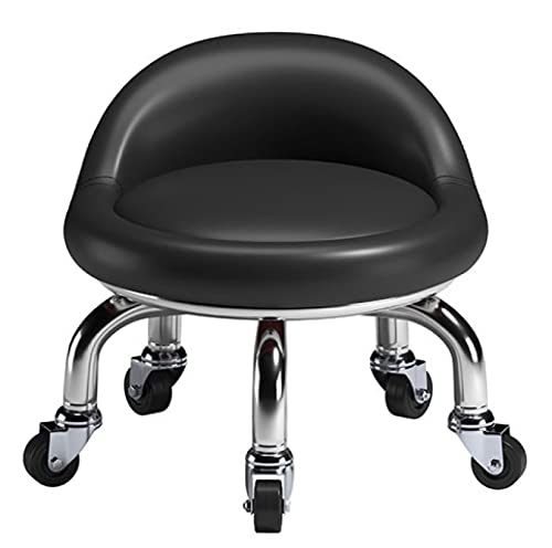 DECOTE Låg rullpall med hjul läder rullstol hjul pall stol rund rullpall sittdyna ryggstöd med universalhjul B