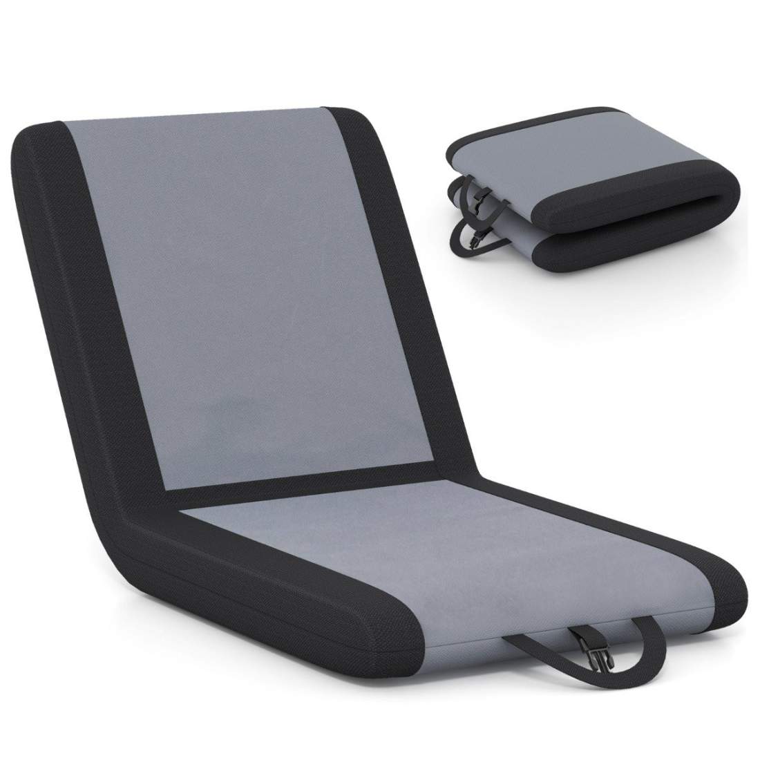 UNUS Golvstol sittdyna med justerbart ryggstöd – perfekt som meditationsstol, läsestol eller stadionstol – grå