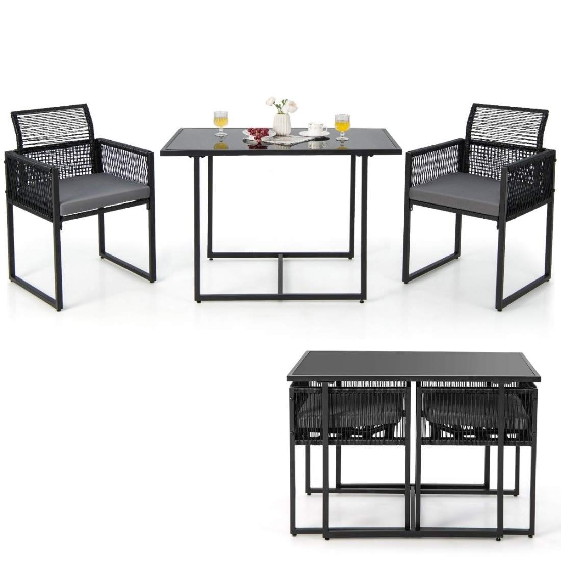 3-delat uteserveringsset med hopfällbart ryggstöd & sittdyna utemöbler