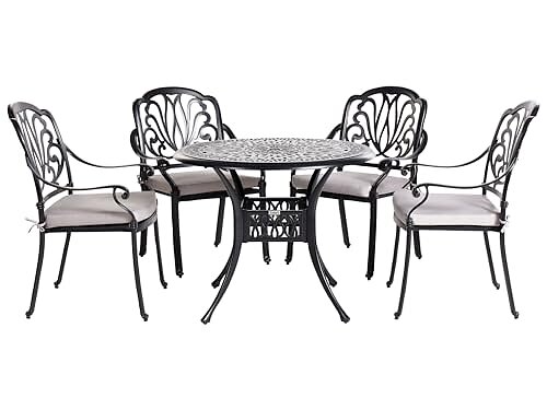 Beliani Vintage Trädgård Utomhus 4-sitsig utegrupp Svart aluminium med sittdynor Ancona