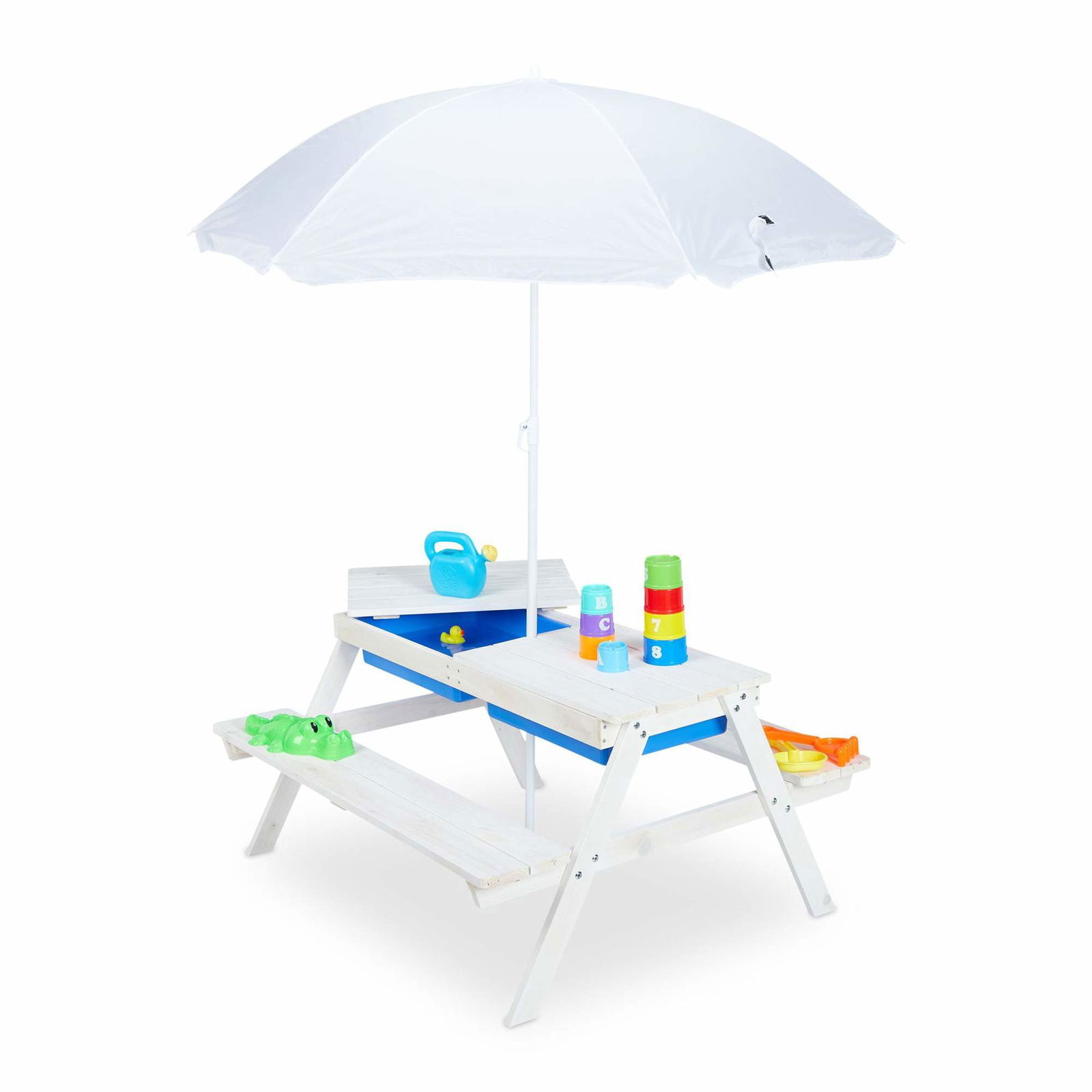Vit sittgrupp för barn Wood med parasoll