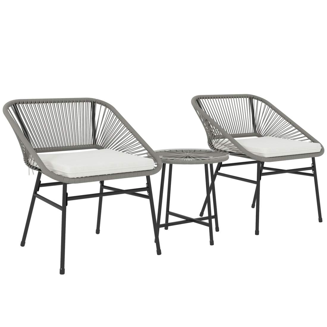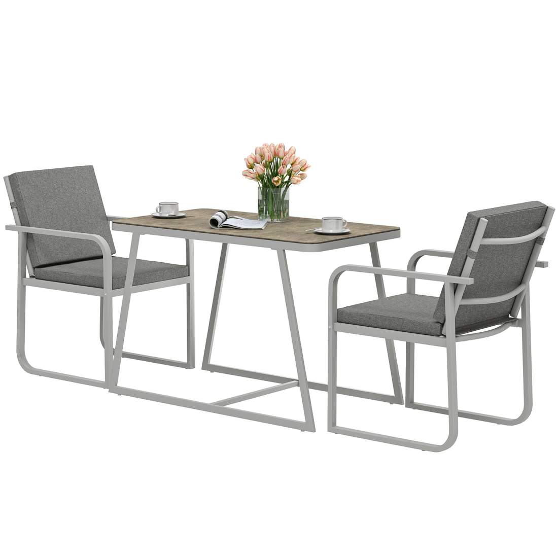 3 st. Rotting bistroset, sittgrupp, trädgårdsset med 2 trädgårdsstolar, soffbord, balkongmöbelset för trädgård, terrass, stål, g
