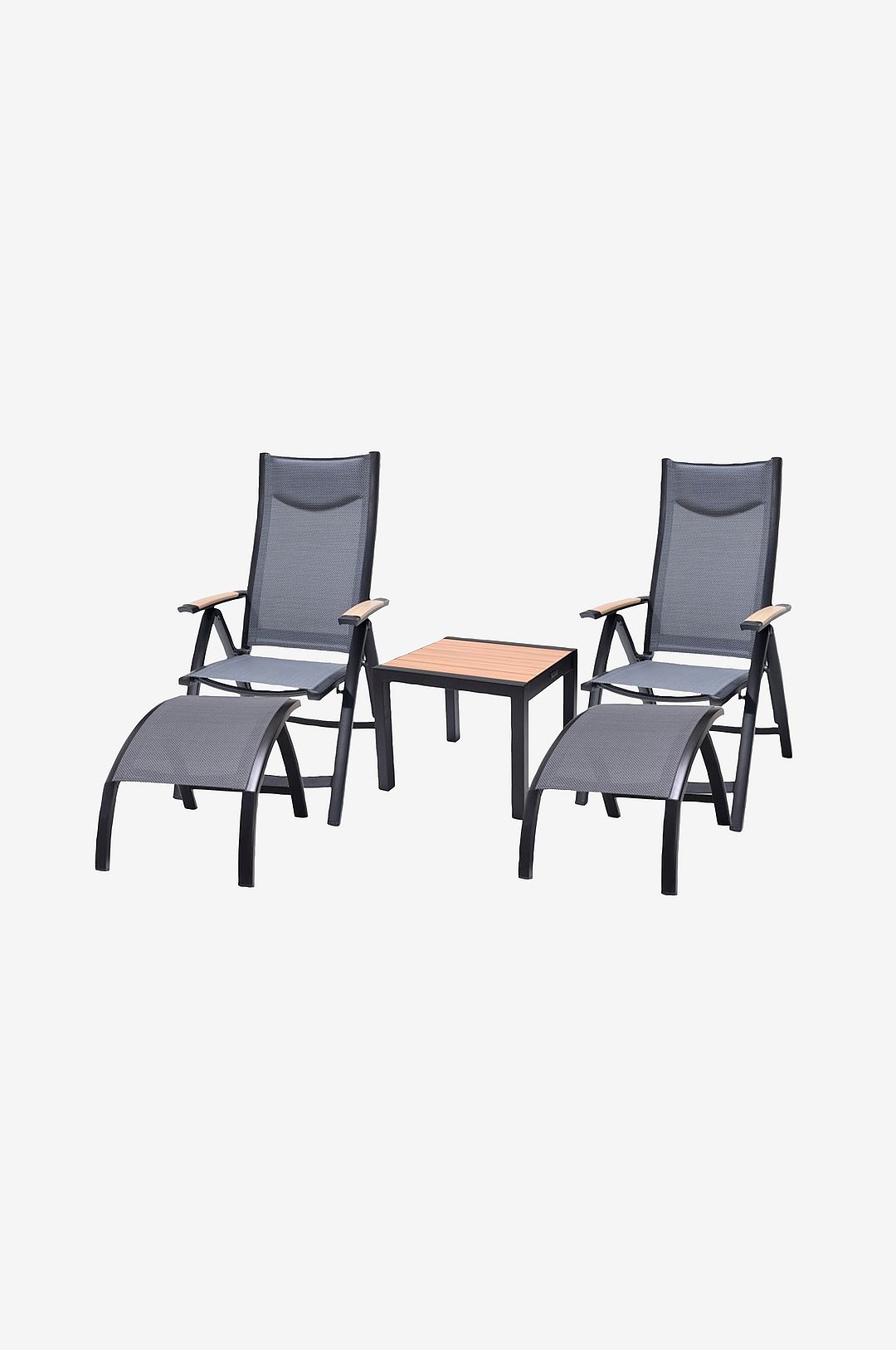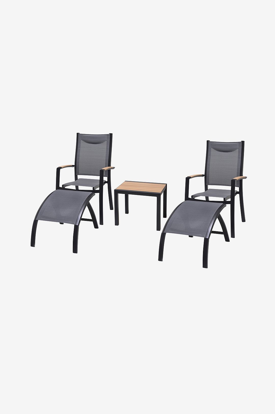 Sittgrupp för 2 i svart aluminium med bord och stolar