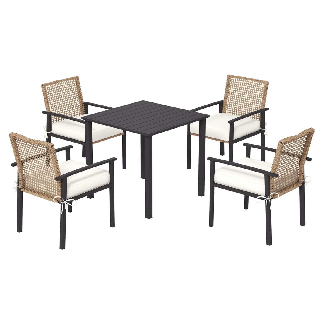 5-delad sittgrupp trädgårdsmöbelset med 1 matbord och 4 stapelbara stolar, trädgårdsmöbler för uteplats, mesh mörkgrå
