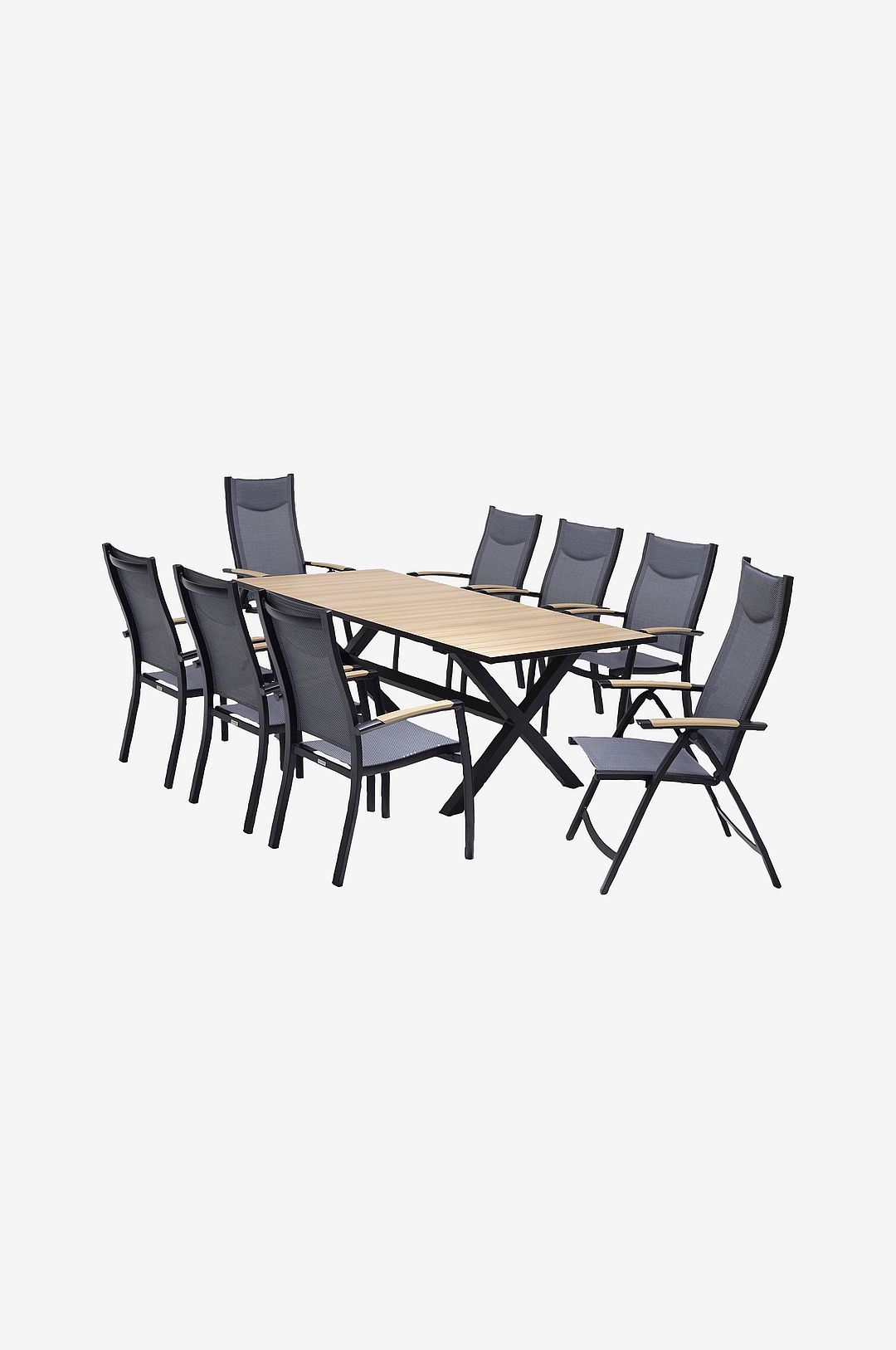 LifestyleGarden - Sittgrupp 210 cm utdragbart, 10 stapelbara karmstolar PANAMA - Svart - Matgrupper - Från Homeroom