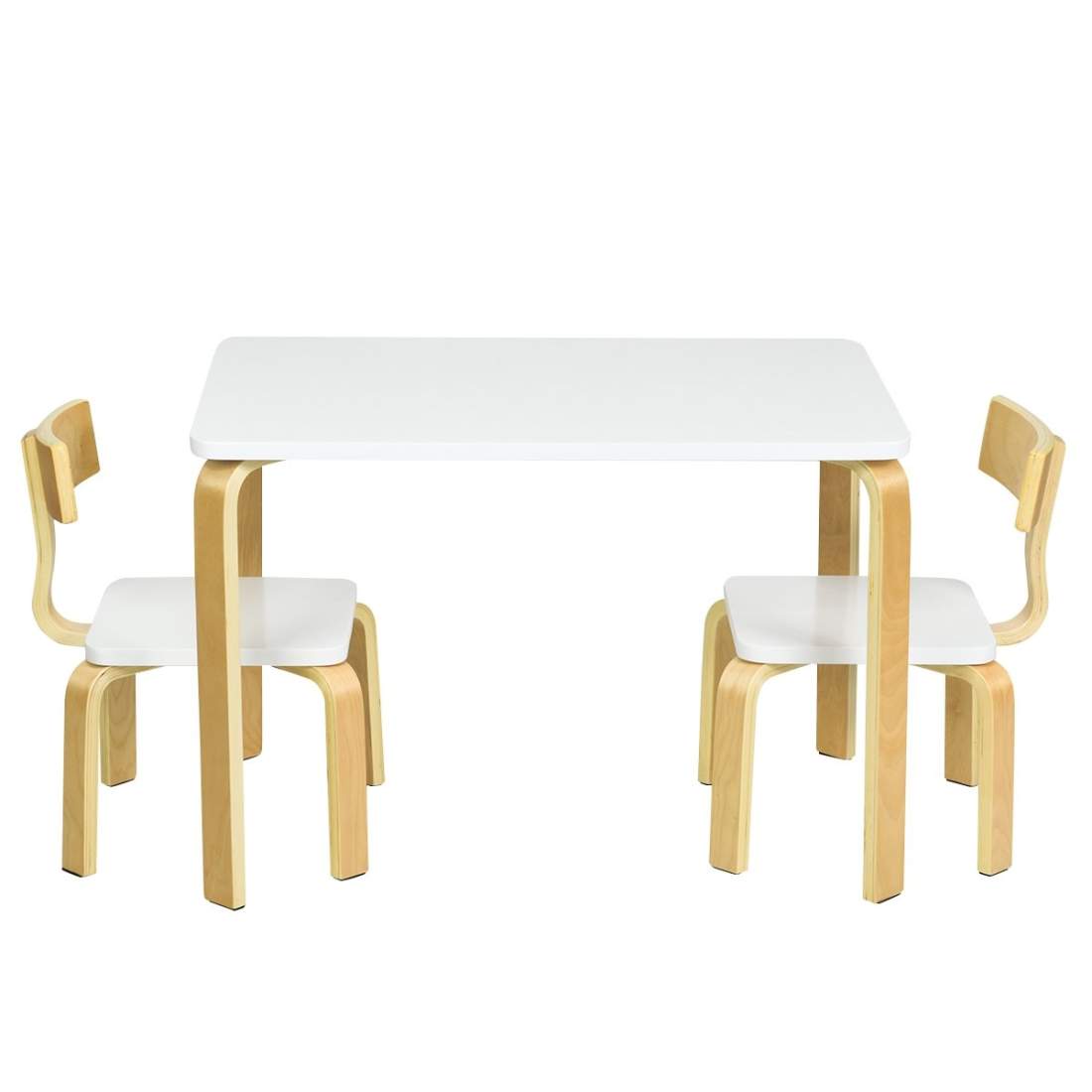 Barnbord med 2 trästolar 3 st. Barnsittgrupp Sittgrupp för barn vit