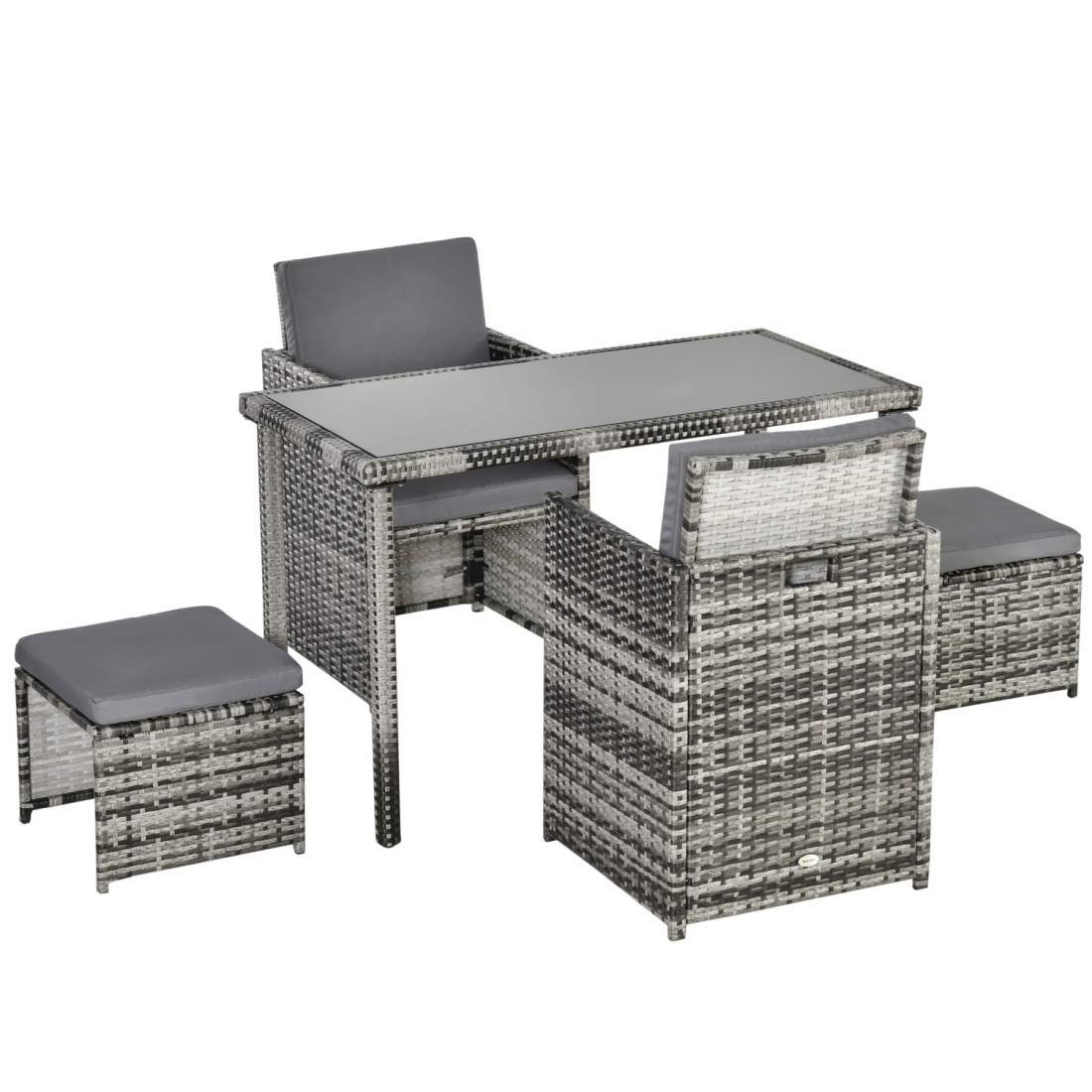Sittgrupp i Polyrotting för 4, Grå Matgrupp med Kuddar