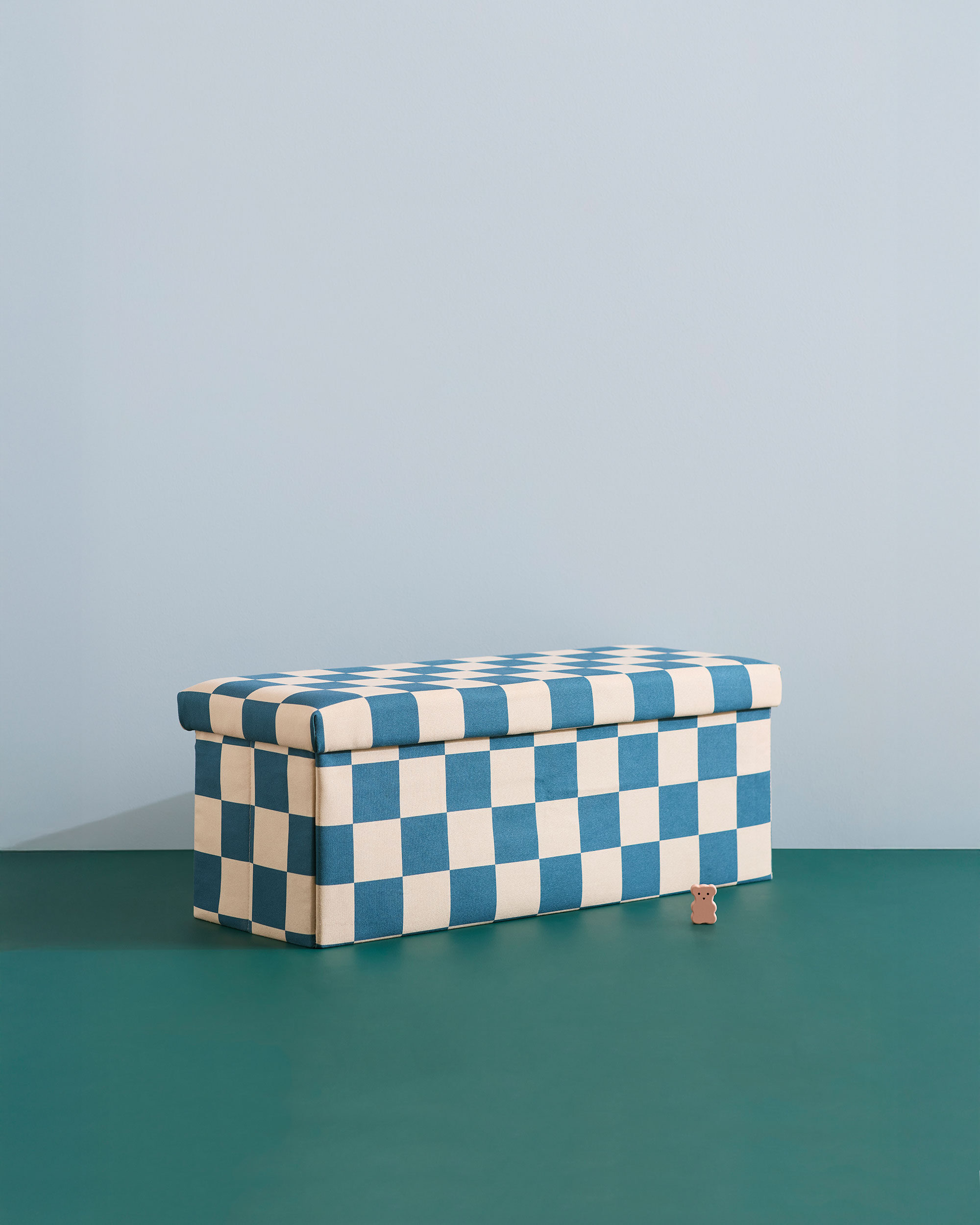 Sittpuff med förvaring ruta blågrön 80 cm