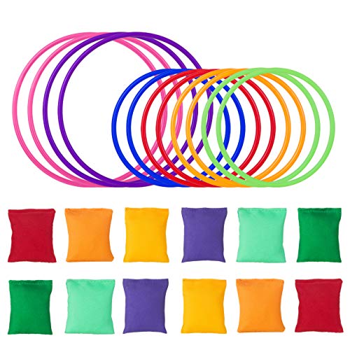 Lihao 24 stycken party kastspel bönpåsar ringar spel sittsäck kasta färgglada för barn vuxna