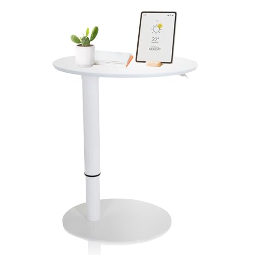 hjh OFFICE 830055 Sitt-stå-bord STAND III Vit - Höjdjusterbart sitt-stå-bord, Generös, oval arbetsyta (B x D): 65 x 50 cm, Individuell höjdjustering med gaslyft, Mycket stabil och robust konstruktion