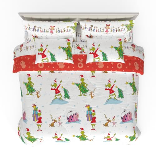 Franco Grinch by Dr. Seuss Holiday & Christmas Bedding Super Soft Comforter and Sheet Set with Sham, 7 Piece Queen Size (Official Dr. Seuss Product)