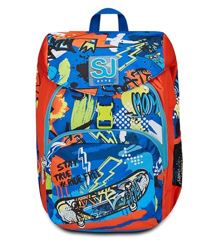 SJ GANG Backpack, Knapsack with 2 Compartments, for 1st Grade Kids - Girls&Boys, For School, Sport & Free Time, Italian Design, multicolor/pattern