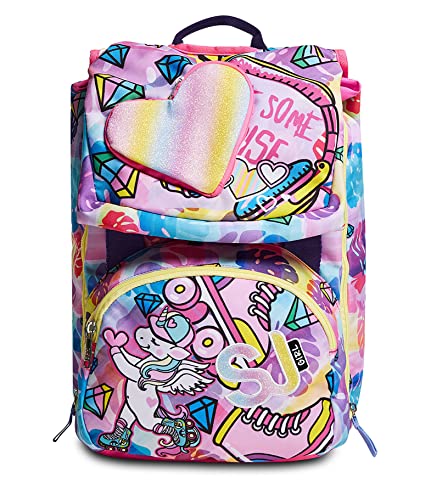 SJ GANG Backpack, Expandable Knapsack, for 1st Grade Kids - Girls&Boys, Large Capacity, For School, Sport & Free Time, with Flip-System Italian Design, pink/pattern