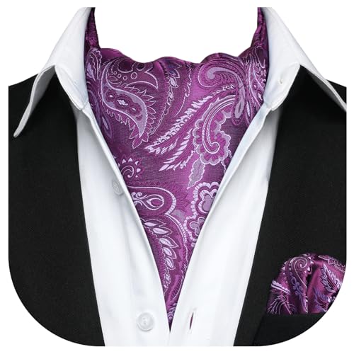 HISDERN Ascot Slips för män Slipsar Och Näsduk Set Paisley Blomma Formell Bröllop Elegant Jacquard Slips Sjal Ascot Herr, Paisley lila, one size