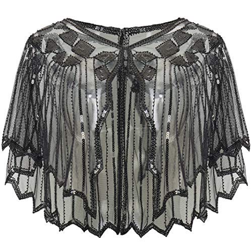 XDGBGFN 20-talet sjal kvällskappa, en halsduk aftonklänning med paljetter, retro kostym tillbehör för bal, fest, bröllop, svart, one size