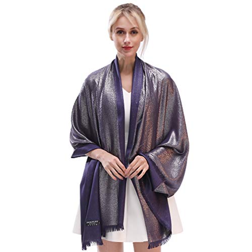 KAVINGKALY Halsdukar för Kvinnor Pashmina Sjal Omslag Bröllop Fest Glitter Stora Mjuka Halsdukar(Navy-Silver)