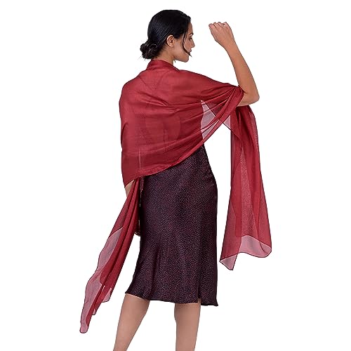 LumiSyne Festlig damstola, sjal, satin, chiffong, enfärgad, lätt, förpackning, för brud, brudtärna, bröllop, aftonklänning, avslutningsbal, röd, En Storlek