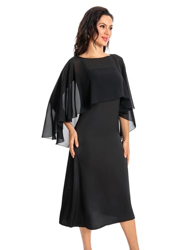 Baoqiya capelettsjalar för kvinnor och sjalar för aftonklänningar mjuk brudtärna sjal chiffong cape bröllop täckning, Svart, one size