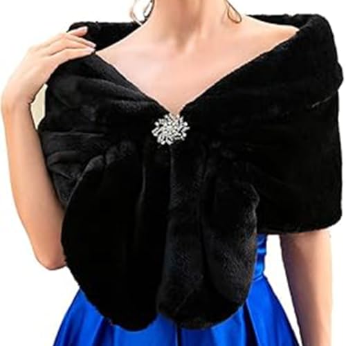 Jovono Dam brud bröllop fuskpäls sjal wrap brud päls halsduk päls wraps och sjalar för kvinnor, Svart, one size
