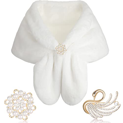 Jovono Dam brud bröllop fuskpäls sjal wrap brud päls halsduk päls wraps och sjalar för kvinnor, Vitt, one size