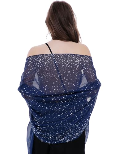 BANETTETA Stjärnklar nattsjalar och halsdukar för aftonklänningar/bröllop sjal sjal glänsande halsduk, C. Marinblå/silverstjärnor, L