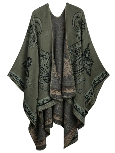 Comilaka Dam tryckt poncho cape överdimensionerad sjal öppen framsida koftor filt halsduk kappa varm vinter 130 x 160 cm, gRÖN, one size
