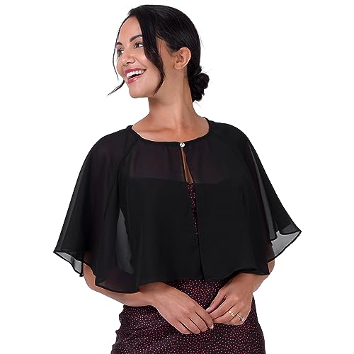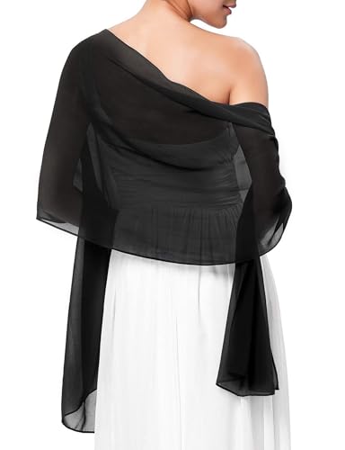Baoqiya capelettsjalar för kvinnor och sjalar för aftonklänningar mjuk brudtärna sjal chiffong cape bröllop täckning, Svart, one size
