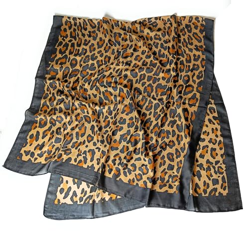 KGM accessories Lyxig stor supermjuk leopardtryck svart rand halsduk sjal - överdimensionerad dam leopard halsduk sjal - djurtryck sjal kvinnor - gåvor (brun), Brun, XL