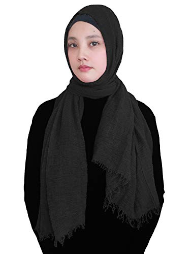 Lina & Lily hijab sjal för muslimska kvinnor skrynkligt tyg (Svart)