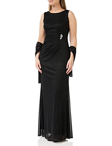 Gina Bacconi Långärmad damklänning med rynkad utsmyckad midja och sjal cocktail, Svart, 36 SE