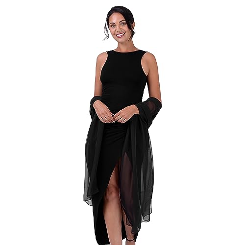 Silkeslena organza-sjalar och halsdukar för aftonklänningar kvinnor genomskinlig skimmer brudtärna formell fest bröllop sjal, Svart 1, 170 * 70 CM/67 * 28 INCH
