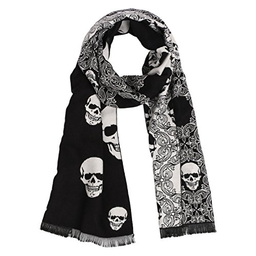 Landisun vinter varm lång mjuk elegant klassisk tofsar halsduk sjal, Skalle (svart vit), M