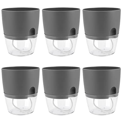 ZEONHEI 6 stycken 18,2 x 11 x 15,3 cm örtkruka självvattnande, plastörtträdgård köksset, självbevattning blomkrukor, blomkrukor med underlägg visuellt vattennivåfönster för fönsterbräda, kök, grå
