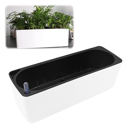 FIYSON Plastsjälvbevattning blomkruka med vattenindikator rektangulär blomkruka självbevattning vattenbehållare planteringskärl trädgårdsblommor bonsai krukor för balkong fönsterbräda, 40 x 13 cm
