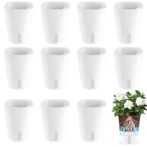 MENAYODA Set om 10 plastblomkrukor med bevattningssystem, självbevattning blomkrukor med dräneringshål och vattennivåindikator för inomhus- och utomhusbruk (12,5 cm)