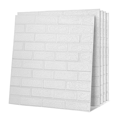 WANWEITONG Tegeltapet i PE-skum, gör-det-själv, självhäftande 3D-väggklistermärken, tapet, präglat tegel, keramiska plattor, sten, väggpaneler för vardagsrum, hem, kontor, inredning (24 st, vit)