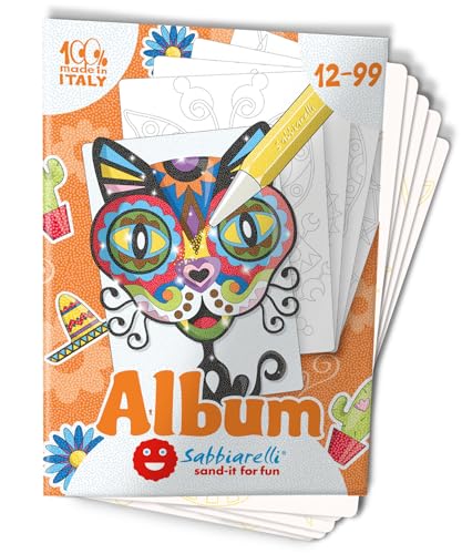 Sabbiarelli Sand-it For Fun - Album Mexicolors: 5 Självhäftande A5-Ark för Sand Art med 5 Motiv med Mexikansk Konst att Färglägga med Färgsand (SAND INGÅR EJ) - Pyssel för Barn 8+
