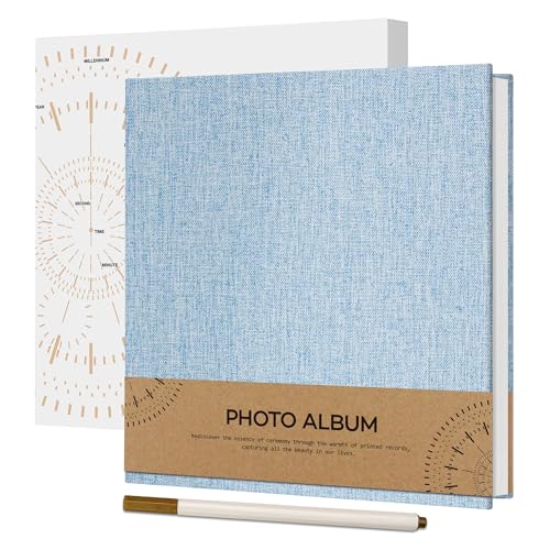 Vienrose Fotoalbum, självhäftande, klippbok, album gör-det-själv, scrapbook med en metallisk penna (33 x 32 cm, 60 sidor, himmelsblå)