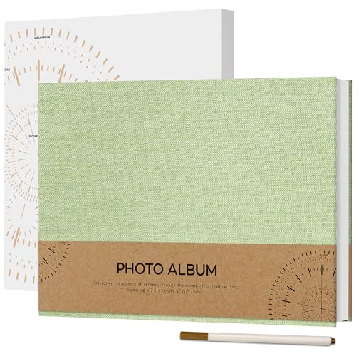 AIOR Fotoalbum, självhäftande, 60 vita sidor, fotoalbum för egendesign, album fotobok, gör-det-själv klippbok, linneskydd, fotobok för familjer, bröllop (grön)