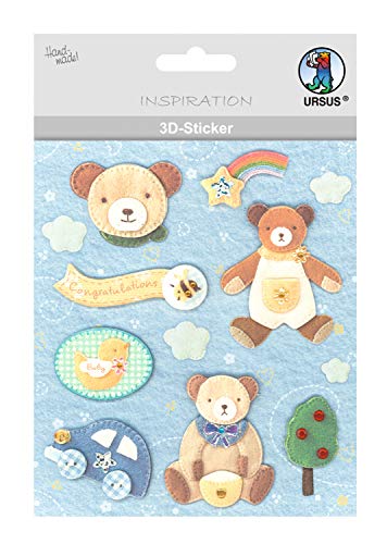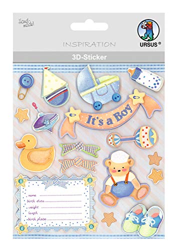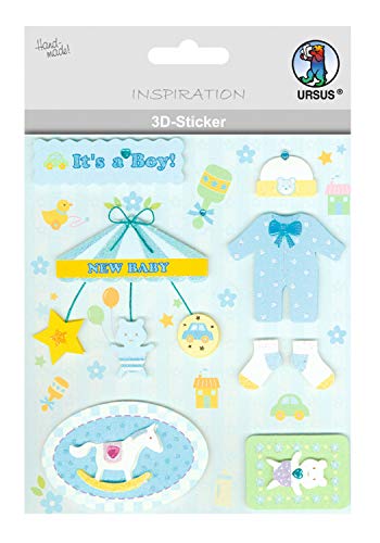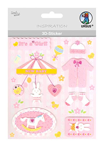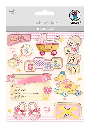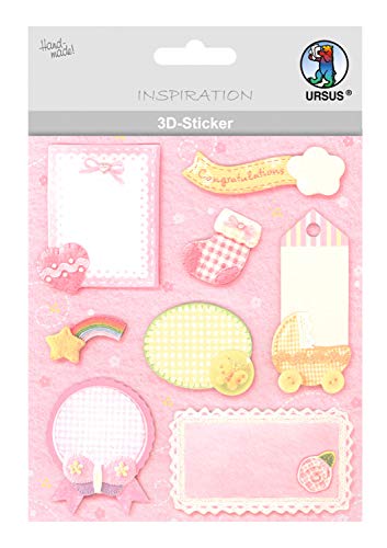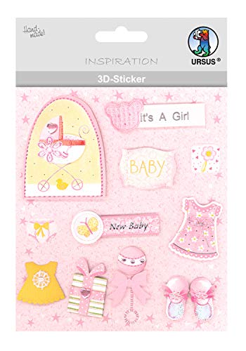URSUS 56420062 3D-klistermärke baby, består av flera nivåer, högklassiga material, självhäftande, för dekoration av gratulationskort, scrapbooking och för andra pysselarbeten, bunt, one size