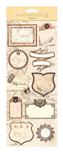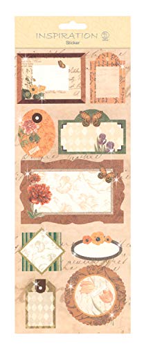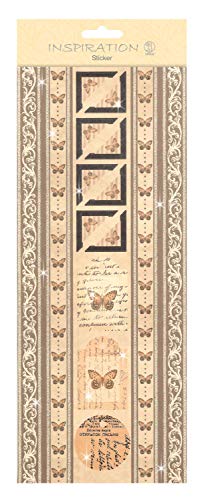 Flat Sticker border beige, platt självhäftande klistermärke, delvis med glittereffekt, självhäftande, för dekoration av gratulationskort, scrapbooking och andra pysselarbete