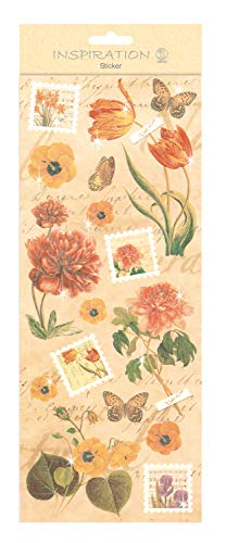 Flat Sticker Flowers beige, platt självhäftande klistermärke, delvis med glittereffekt, självhäftande, för dekoration av gratulationskort, scrapbooking och andra pysselarbete