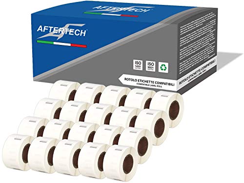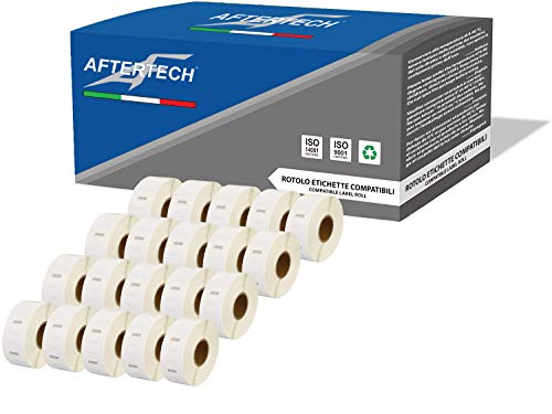 Aftertech 20x 11353 12x24mm Kompatibel självhäftande etiketter rullar (1000 Etiketter/rulle = 20000 totalt) för Dymo LabelWriter Seiko SLP märkningsmaskiner skrivare S0722530 20x11353