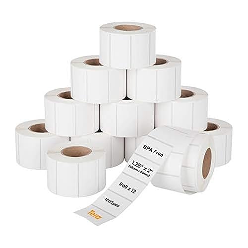 Tera Termiska fraktetiketter 30 mm x 50 mm (1 000 etiketter/rulle, 12 rullar) för olika skrivare, glada, BPA-fria, självhäftande adressetiketter