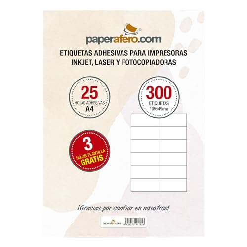 Självhäftande pappersetiketter | 300 etiketter | storlek 105 x 49,5 mm | självhäftande papper för utskrift på alla skrivare, perfekta självhäftande vita klistermärken för hushåll och yrkesmässigt bruk