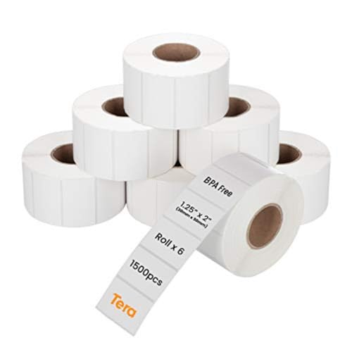 Tera Termiska fraktetiketter 30 mm x 50 mm (1 500 etiketter/rulle, 6 rullar) för olika skrivare, glada, BPA-fria, självhäftande adressetiketter